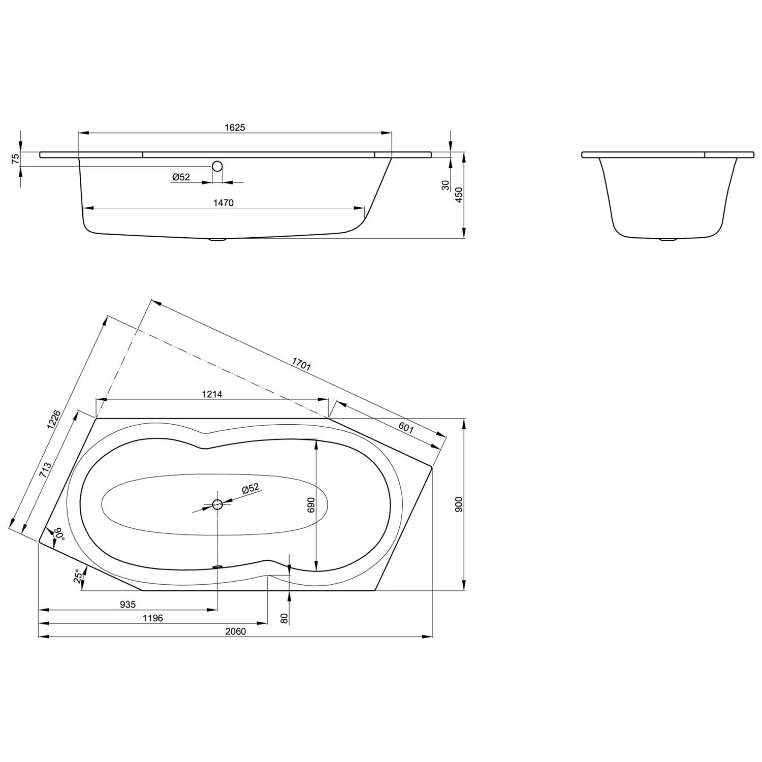 - Maße: 206 x 90 x 45 cm für ca. 190 Liter Wasser nebst einem Badenden