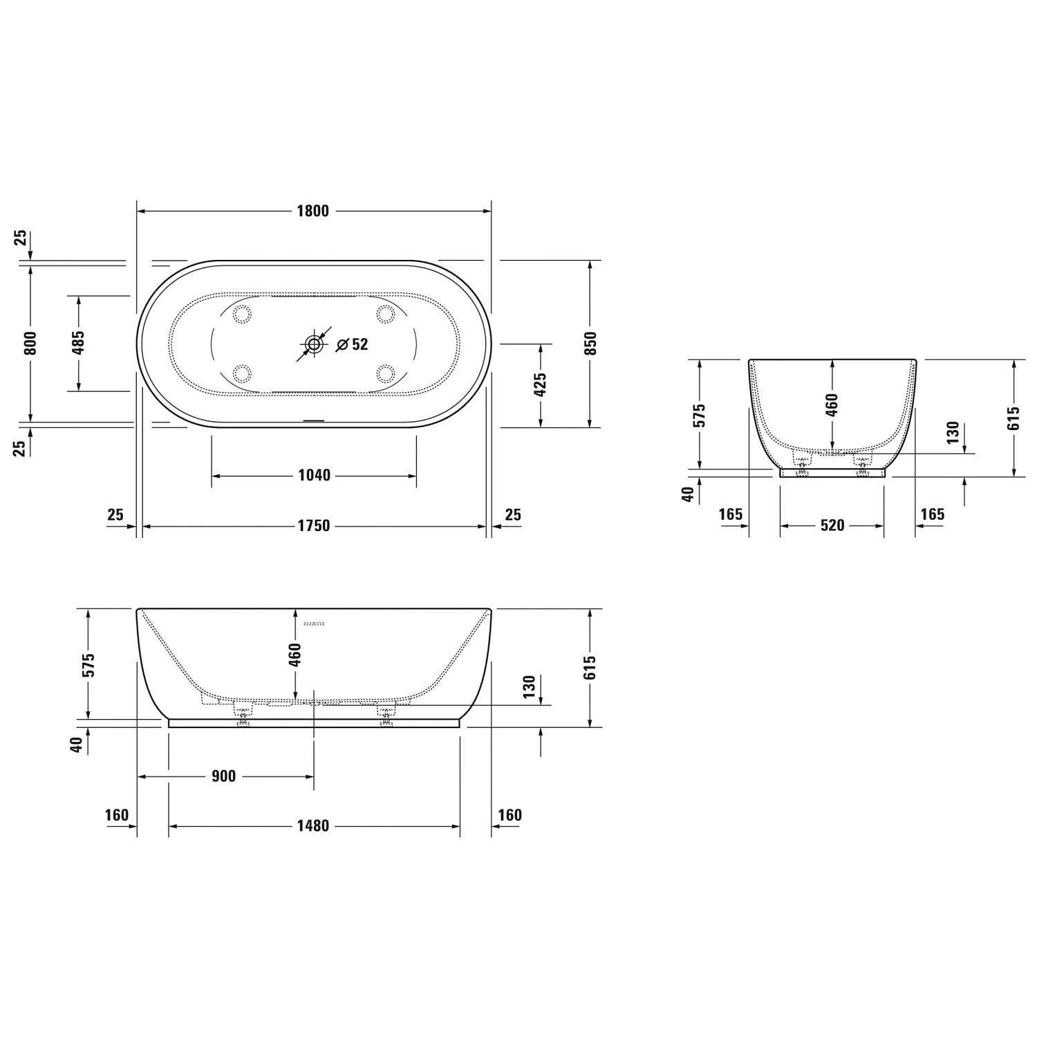 Duravit Luv Badewanne freistehend 180 x 85 cm, mit Überlauf