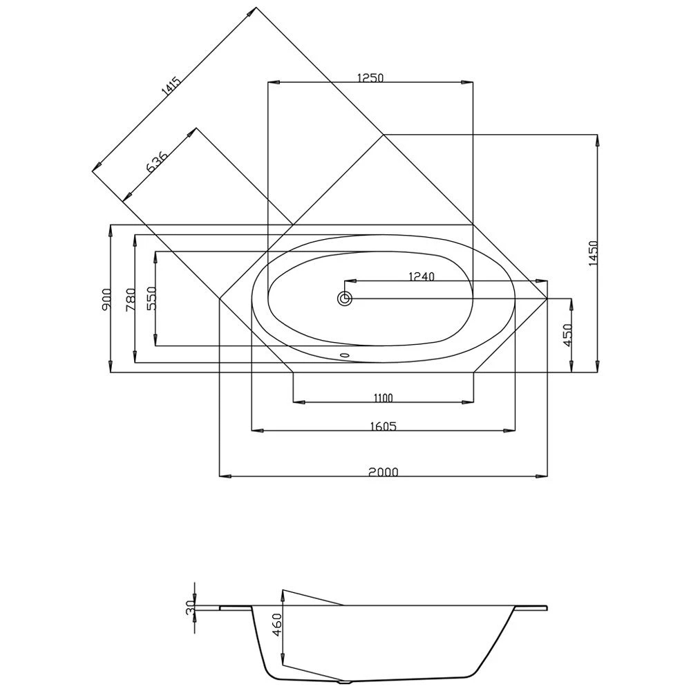 Hoesch Armada Sechseck-Badewanne 200 x 90 cm Überlauf links