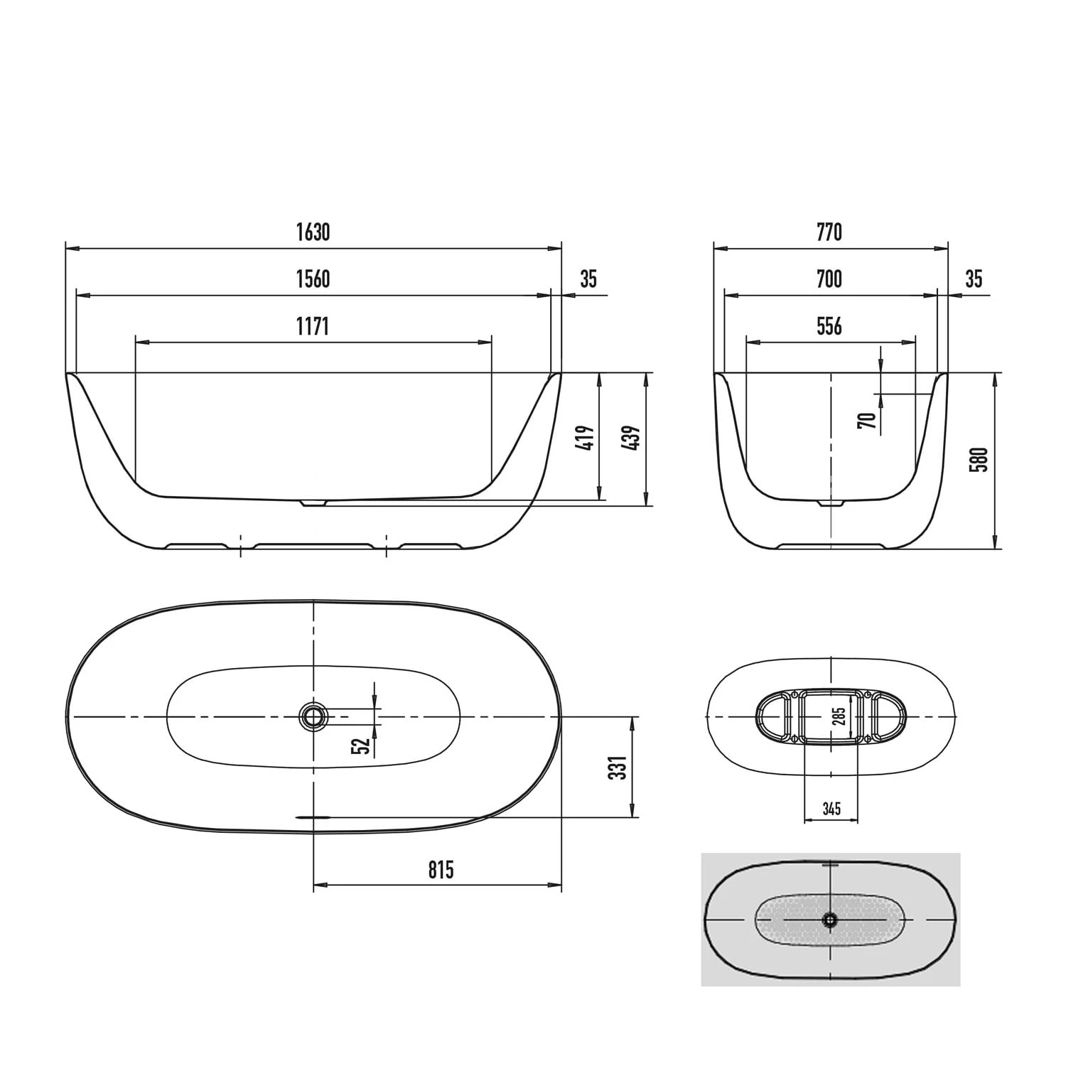 - Badewannenform: oval