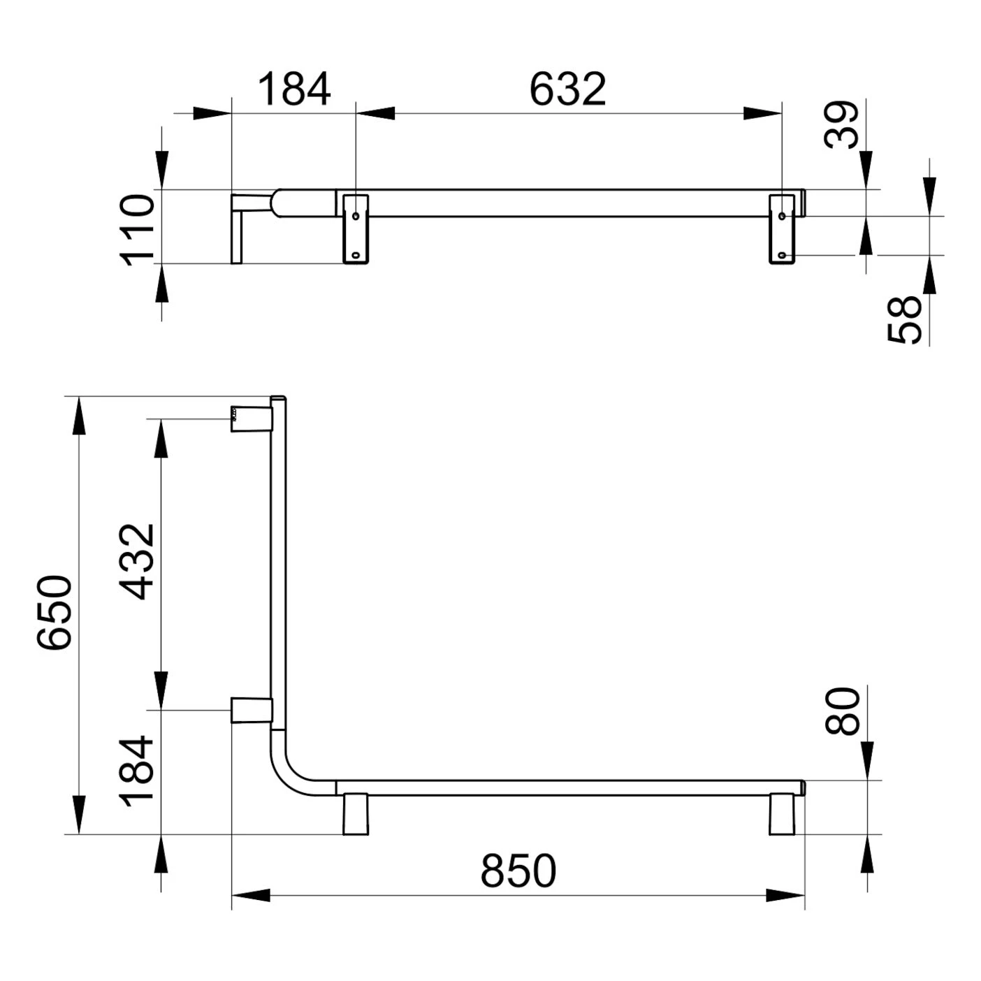 Keuco AXESS Eck-Dusch-/Wannenhandlauf aus Metall, 85 x 65 cm