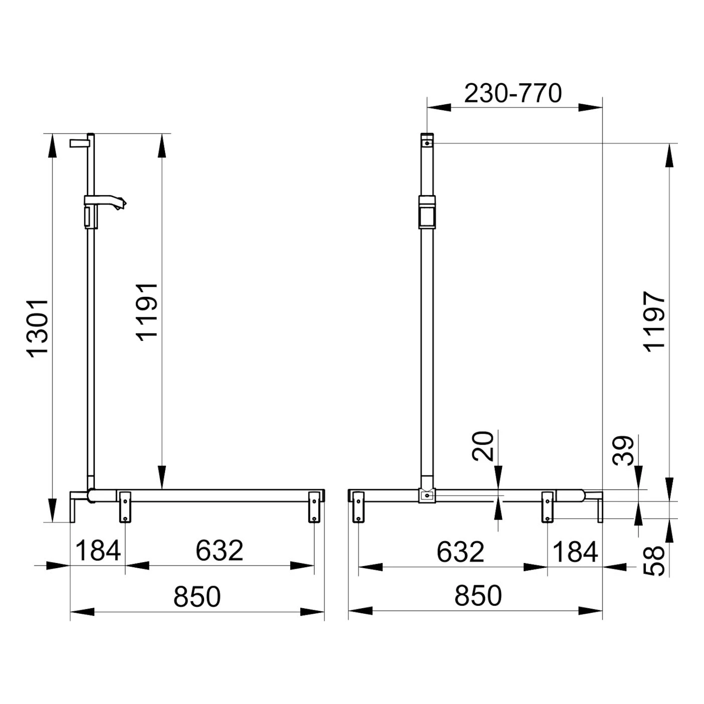 - Mit Brausestange rechts