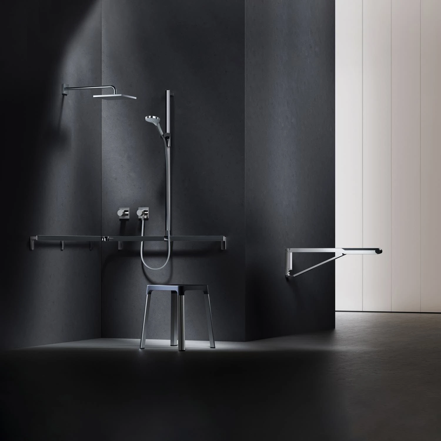 Keuco AXESS Eck-Duschhandlauf 90° mit Brausestange, 85 x 85 x 130,1 cm
