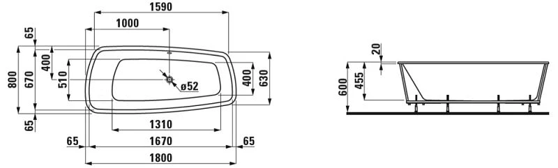 LAUFEN Palomba Collection Badewanne 180 x 80 cm, inkl.Fußgestell