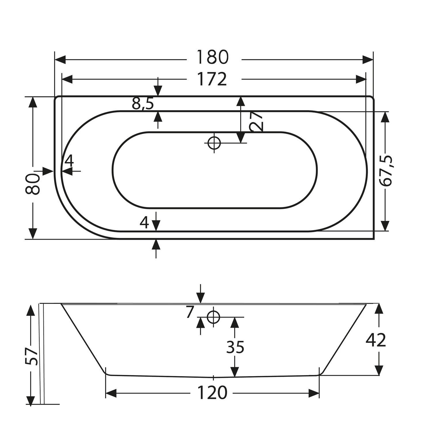 Polypex Calina rechts halbfreistehende Badewanne inkl. Ab- und Überlaufgarnitur mit integriertem Wanneneinlauf