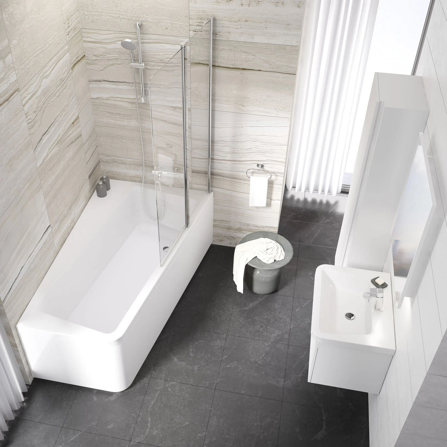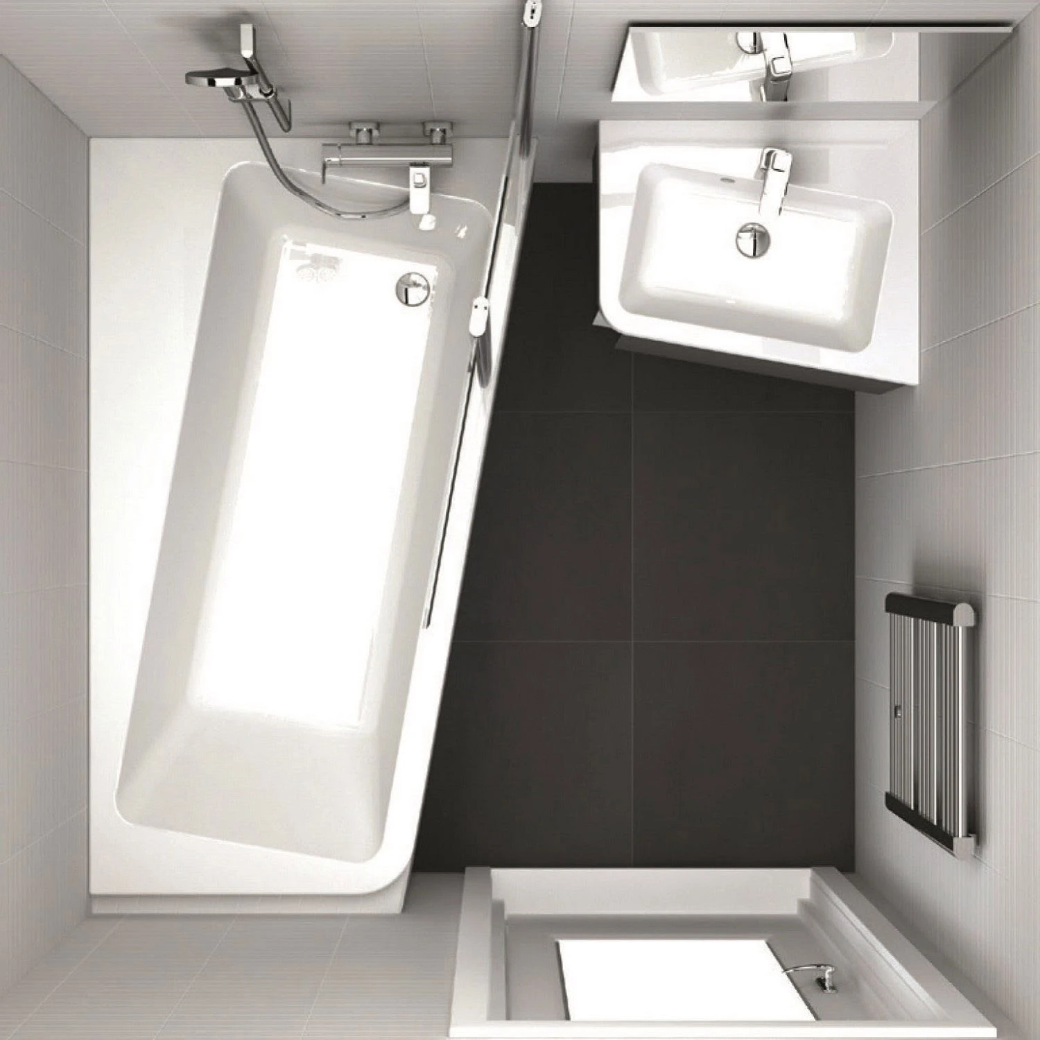 Um mehr nutzbare Fläche, etwa für Ablageflächen oder einen Duschsitz zu erhalten, reicht es, die klassische Badewannenform um gerade mal 10° zu drehen.
