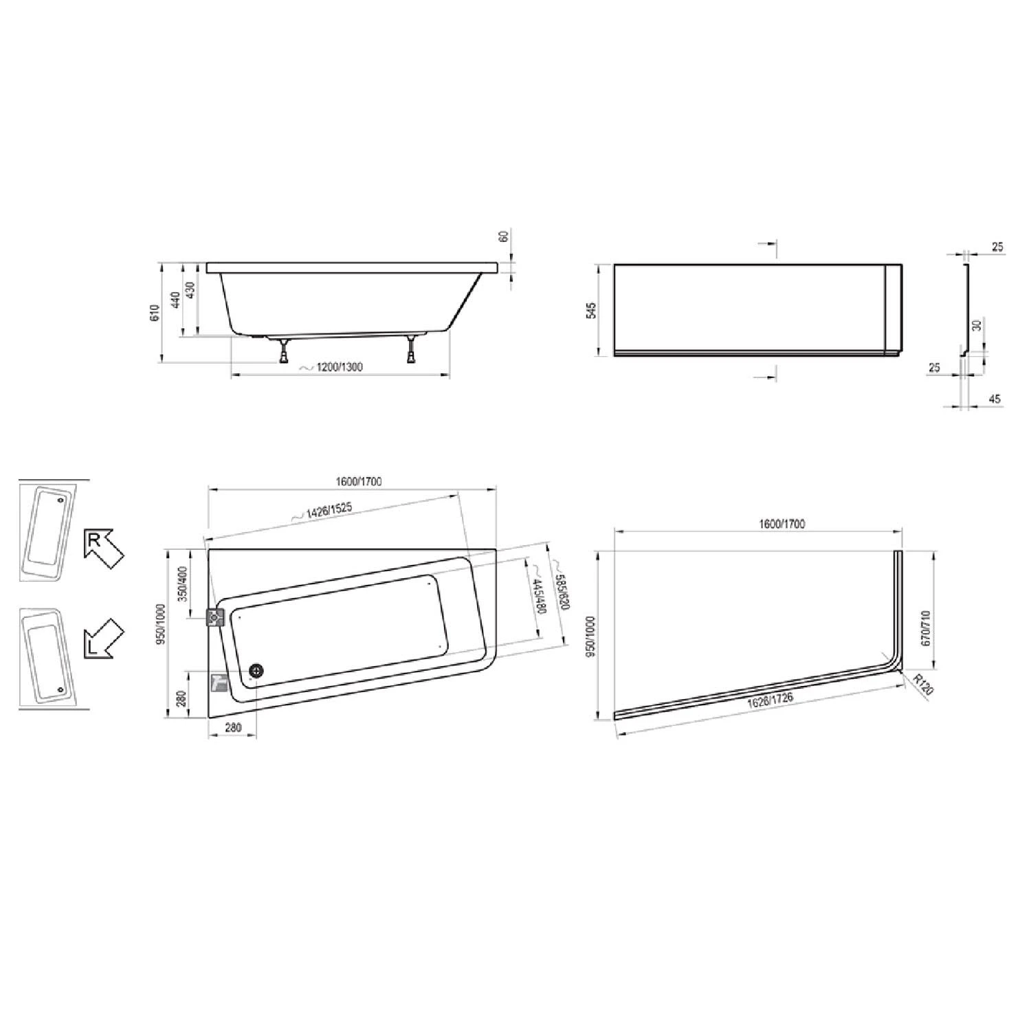 RAVAK 10° asymmetrische Badewanne 170 x 100 cm, rechts