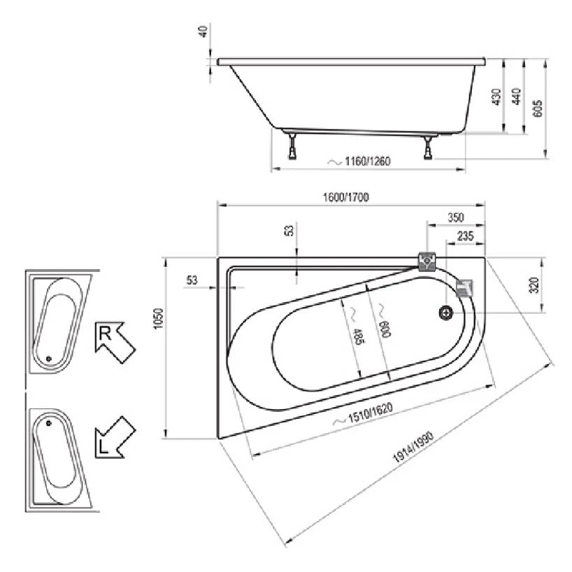 RAVAK Chrome asymmetrische Badewanne 160 x 105 cm, rechts