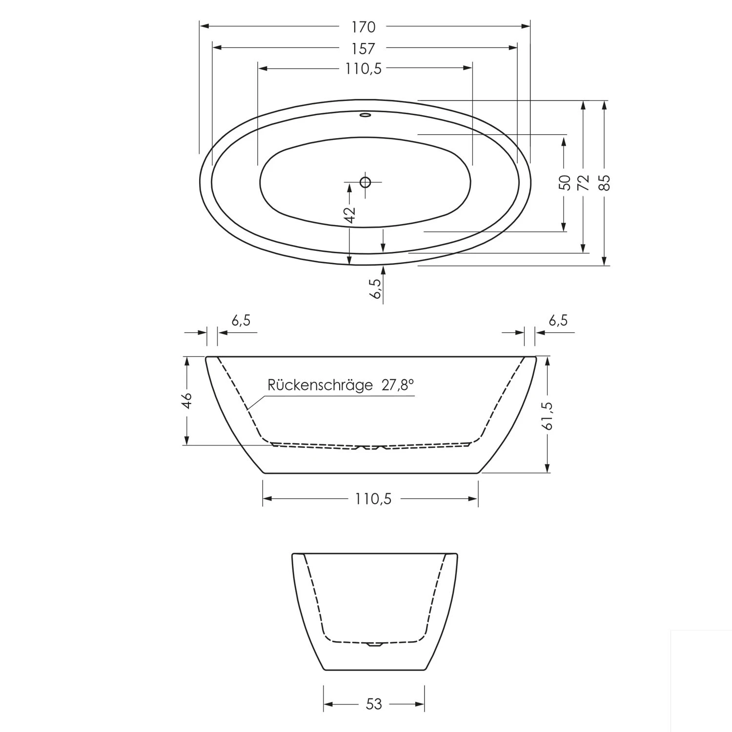 Repabad Ferrera freistehende Ovalbadewanne 170 x 85 cm