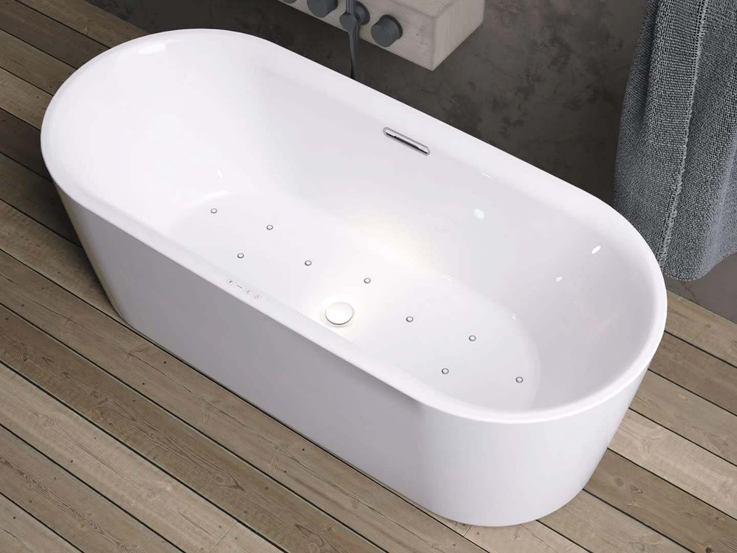 Riho Modesty freistehende Badewanne 170 x 76 cm mit Sparkle Mood + Riho Fall