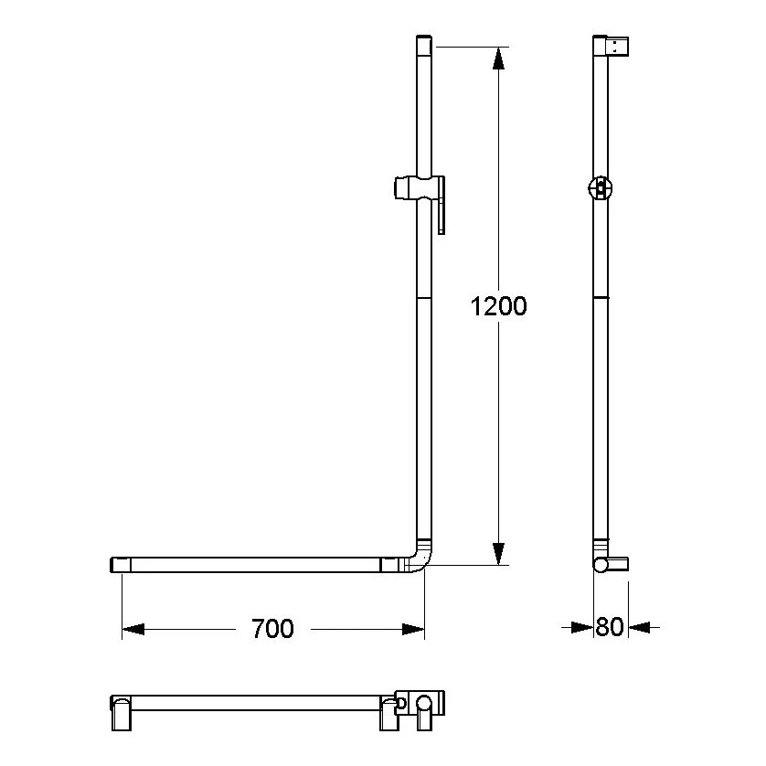 Silver Age System Winkelgriff 70 x 120 cm, mit Brausehalter rechts
