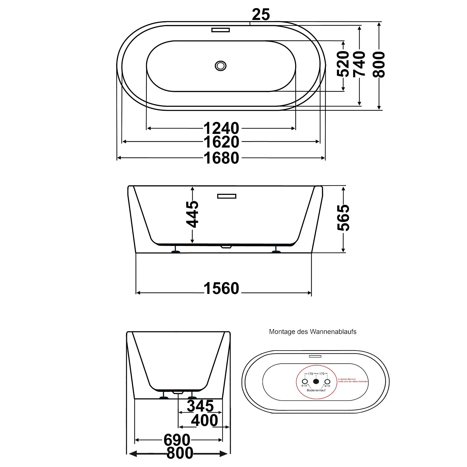 Alle freistehenden Badewannen werden handgefertigt. Dadurch kann es zu geringen Maßabweichungen bei der angegebenen Höhe kommen.