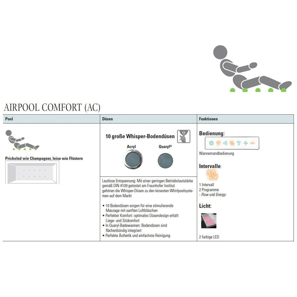 - 10 gleichmäßig angeordnete große Whisper-Bodendüsen für eine stimulierende Massage mit sanften Luftbläschen