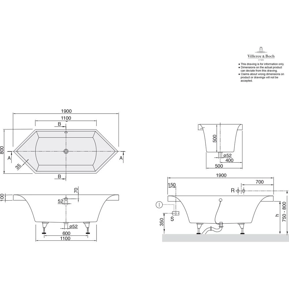 Villeroy & Boch Squaro Duo Sechseckbadewanne 190 x 80 cm